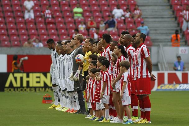 O esquema com uma linha de cinco defensores funcionou mais uma vez do modo esperado e o Bragantino não teve mais do que três chances reais no primeiro tempo. Por outro lado, no ataque, o time sofria. Era visível que faltava um jogador para organizar o Timbu ofensivamente. Aos 15 minutos, em um lampejo de criatividade, Willian Magrão e Marino tabelaram na entrada da área e Marino entrou livre para finalizar. Poderia ter aberto placar, mas passou para Patrick Vieira empurrar para o gol. Explosão na Arena Pernambuco, mas o atacante alvirrubro estava impedido. Erro de ambos, já que Marino poderia ter feito seu terceiro gol na Série B e Patrick estava mal posicionado.